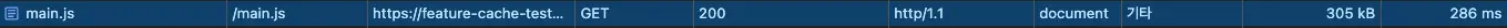 요청 리소스 크기가 305 kb 에서 0.2kb 로 변경된 모습을 볼 수 있습니다.
