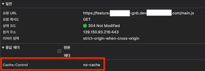 그래서 브라우저는 캐시하지 않고 계속 GNB리소스를 요청합니다.